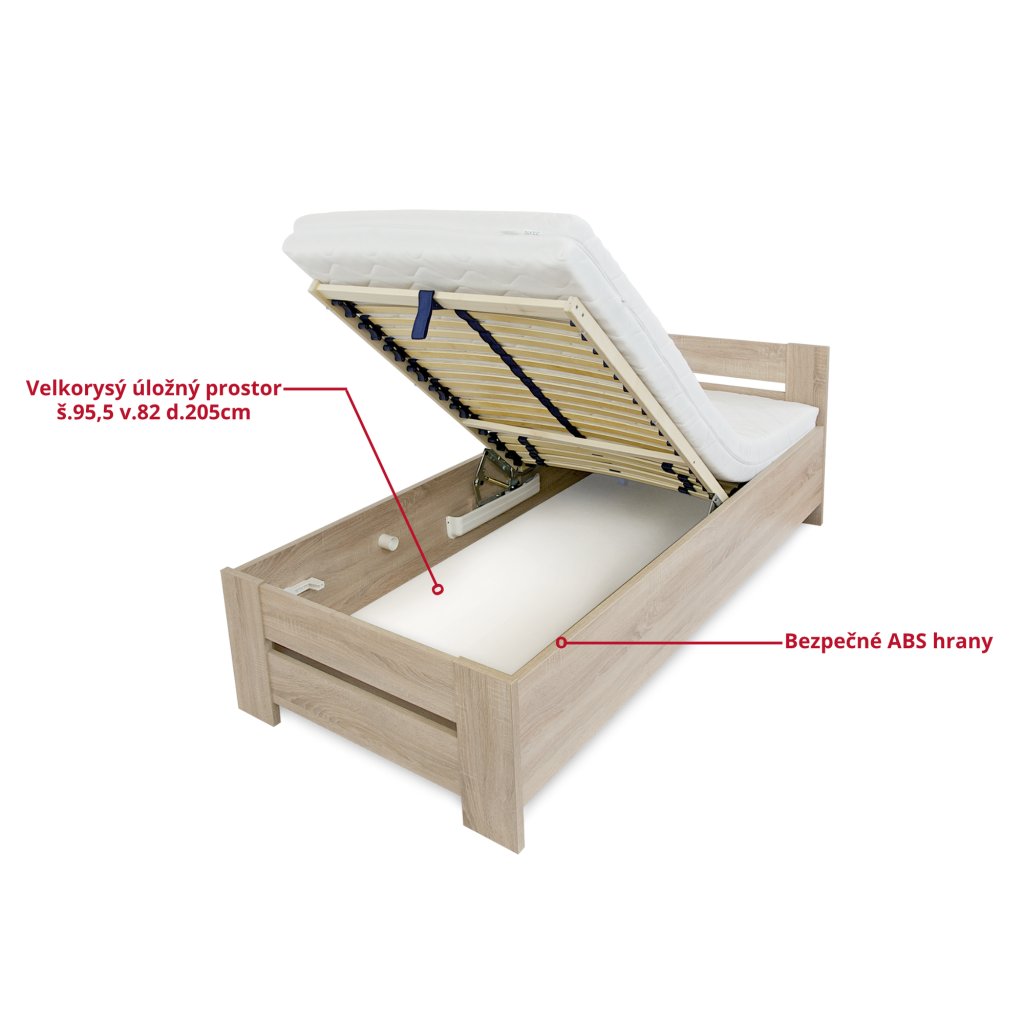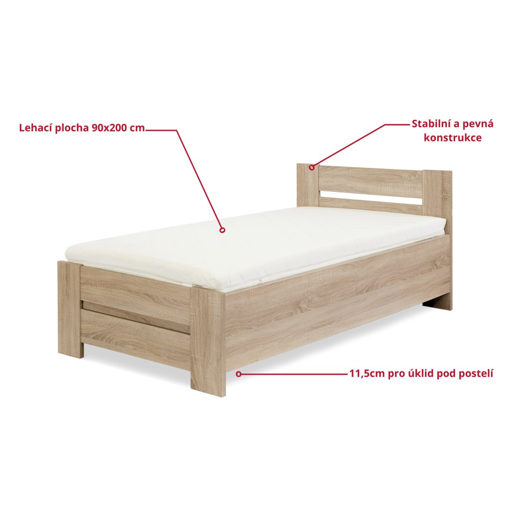 Jednolůžková postel 90×200 cm, která kombinuje eleganci, praktičnost a komfort.