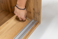 Posuvné dveře kloužou po moderních pojezdech s tlumením a dotahem - lehce, tiše, bez námahy. Nikdy se nepřibouchnou. A pokud máte děti nebo vnoučata, můžete být v klidu – i ony zvládnou zavřít skříň, aniž by si přimáčkly prsty.