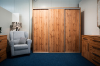 Posuvné dveře elegantně řeší problém s nedostatkem místa – nepotřebují k otevření žádný prostor navíc. Můžete si dát před skříň třeba vysněné křeslo k odpočinku, na které doteď nebyl prostor. Malé místnosti nevyžadují skládání tetris z nábytku, vyžadují myslet chytře.