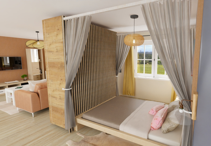 Vizualizace: Skříň s posuvnými dveřmi jako příčka