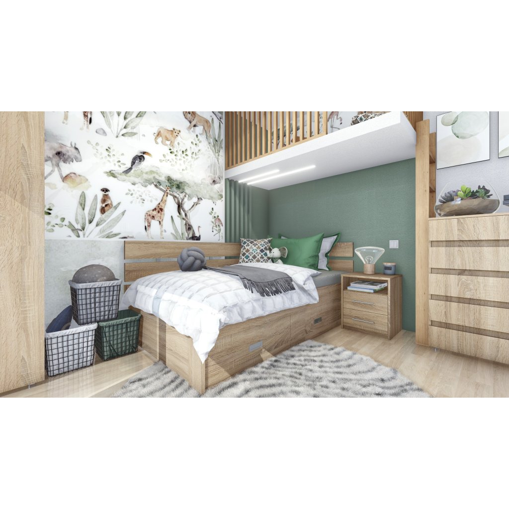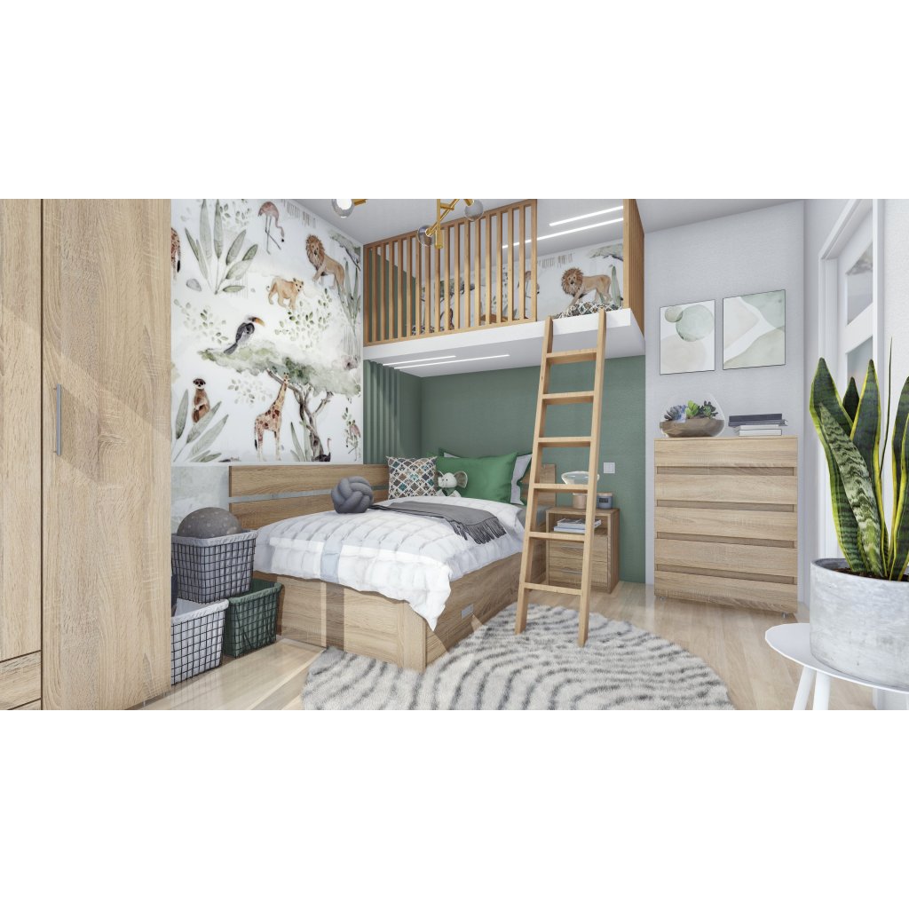 ELITE je extra vysoký noční stolek s volným úložným prostorem. Kvalitní zásuvky a pojezdy jsou přizpůsobeny častému otevírání. Vyrobeno z lamina o síle 18mm Výběr akčních dekorů. Kvalitní kování a spojovací materiál je bez použití plastových součástek, vyjma ochranných krytek.