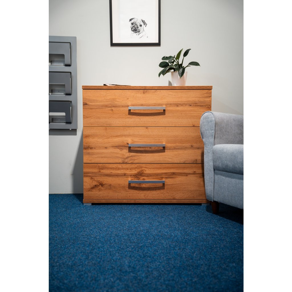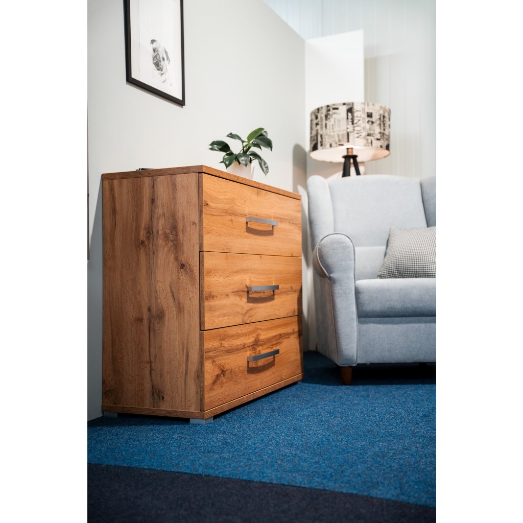- komoda je vyrobena z lamina o síle 18/25 mm (horní a spodní deska má tloušťku 25 mm)