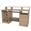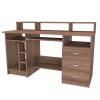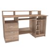 Počítačový a psací stůl WES (pravý) má velký úložný prostor, který využijete i pro tiskárny. Stůl má výsuvnou polici i ve spodní části pro tiskárnu nebo scanner. Vyrobeno z lamina o síle 18mm. Výběr akčních dekorů. Kvalitní kování a spojovací materiál je bez použití plastových součástek, vyjma ochranných krytek. Hranění i z nepohledových stran.