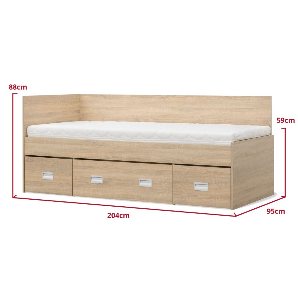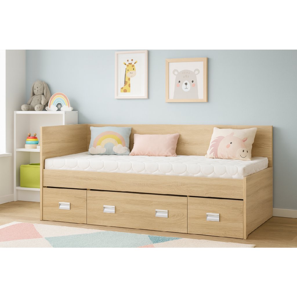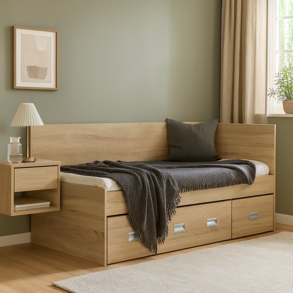 • Jednolůžková postel 90×200 cm, která spojuje komfort, praktičnost a chytré detaily.