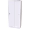 Skříň se třemi variantami vnitřního provedení. Posuvné dveře s přístupem z obou stran, šetří prostor v místnosti.
