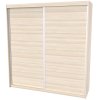 Velká šatní skříň MAXIM 2 2019 je vhodná i do menších místností. Moderní posuvné dveře vytvoří větší volný prostor kolem této skříně. Vyrobeno z lamina o síle 18mm. Výběr akčních dekorů. Kvalitní kování a spojovací materiál je bez použití plastových součástek, vyjma ochranných krytek. Dvě varianty vnitřního uspořádání. Skříň je z výroby připravena na obě varianty, rozložení si volíte až při montáži. Posuvné dveře s tlumením a dotahem. Dveře se skládají ze tří dílů, což nabízí možnost kombinace dekorů. Lze také osadit zrcadlem.